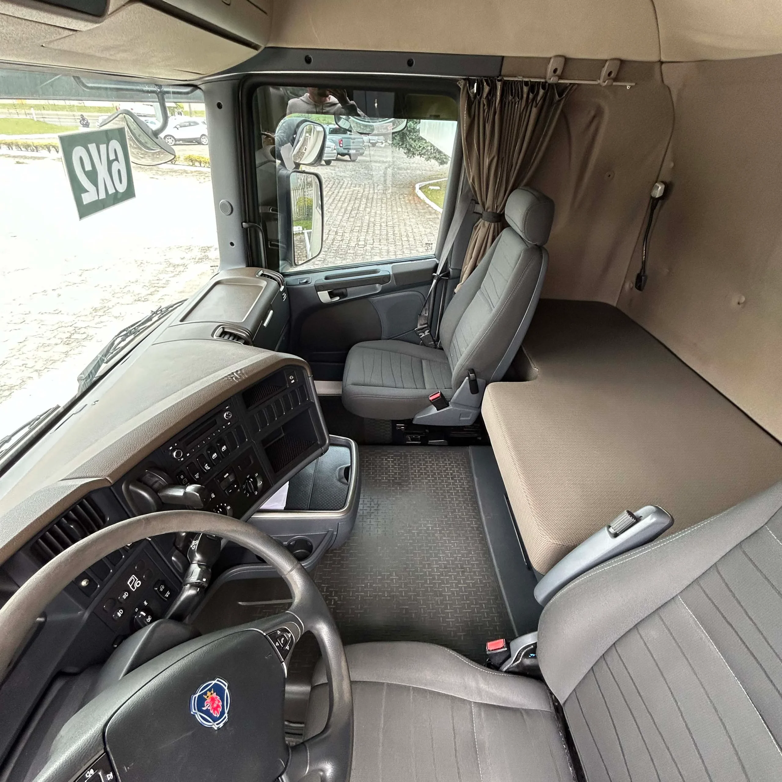 • Ano 2019 • Tração 6×2 • Câmbio automático • Único dono • Apenas 500 mil km • Suspensão pneumática • Pneus ótimos • Cautelar 100% aprovada • Interna original